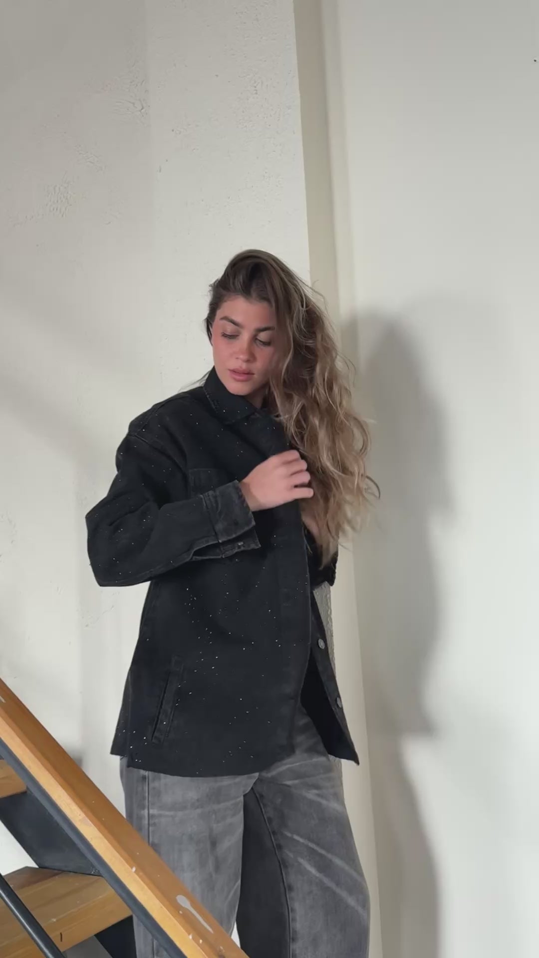 Starluxe Studded Denim Jacket In Black